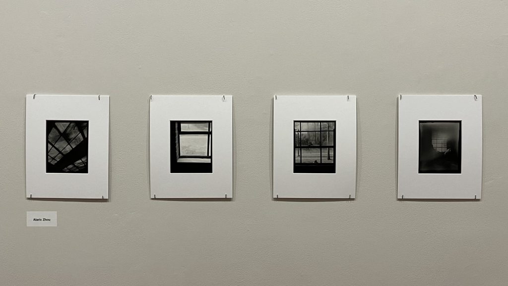 Group photo exhibition titled “Content/Contact” at Juanita Kreps Gallery, Durham, NC, USA, in April 2024. The four photos are view camera contact prints about “windows.”
